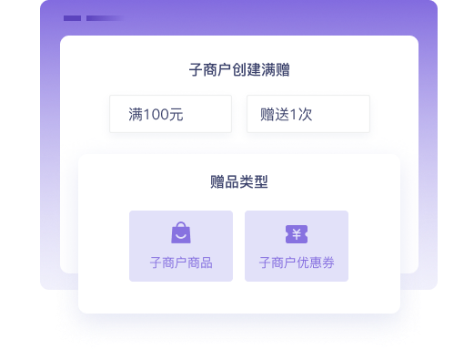 子商户可以创建满赠活动,赠送子商户的商品和优惠券。