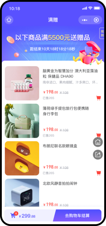 满赠活动,且可以和打折/满减/积分抵扣/优惠券/包邮等活动