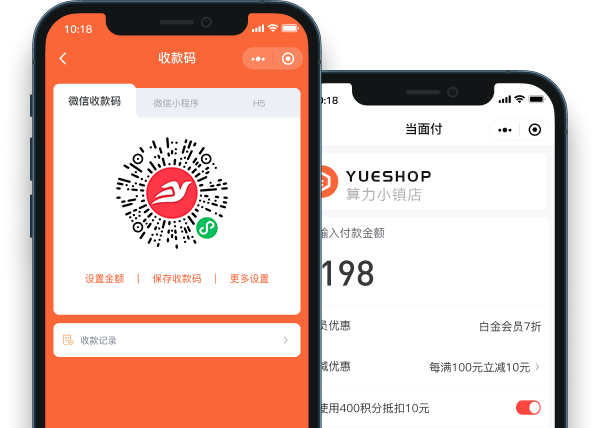 固定金额收款码:后台预先设定好一个固定金额,会员付款 时无法修改金额