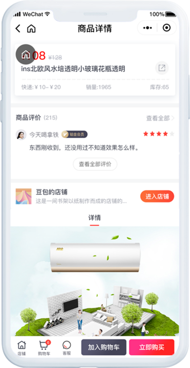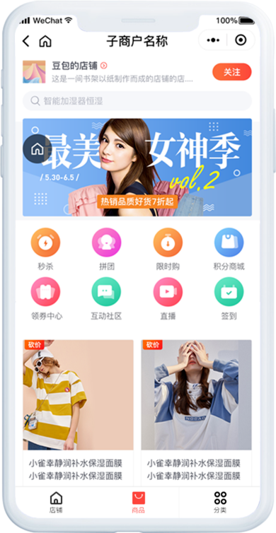 子商户支持店铺装修,可视化编辑,DIY自己的店铺首页和其他自定义页面,为商家店铺快速打造人气商城。