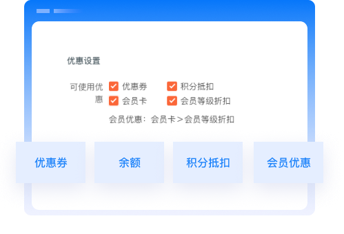 用户在表单支付时可以选择使用优惠券、余额、积分抵扣、会员优惠。